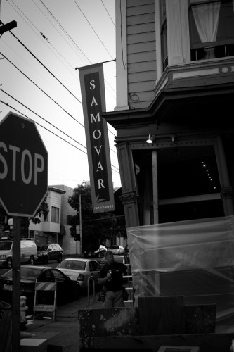 Ha! Clever headline, yeah? This Samovar is on 18th St and Sanchez, and while not our usual tiistaitee hangout, part of the same biz. Somebody plowed in with an SUV. 5 injured. Tea house fucked up. Car totaled. Man!